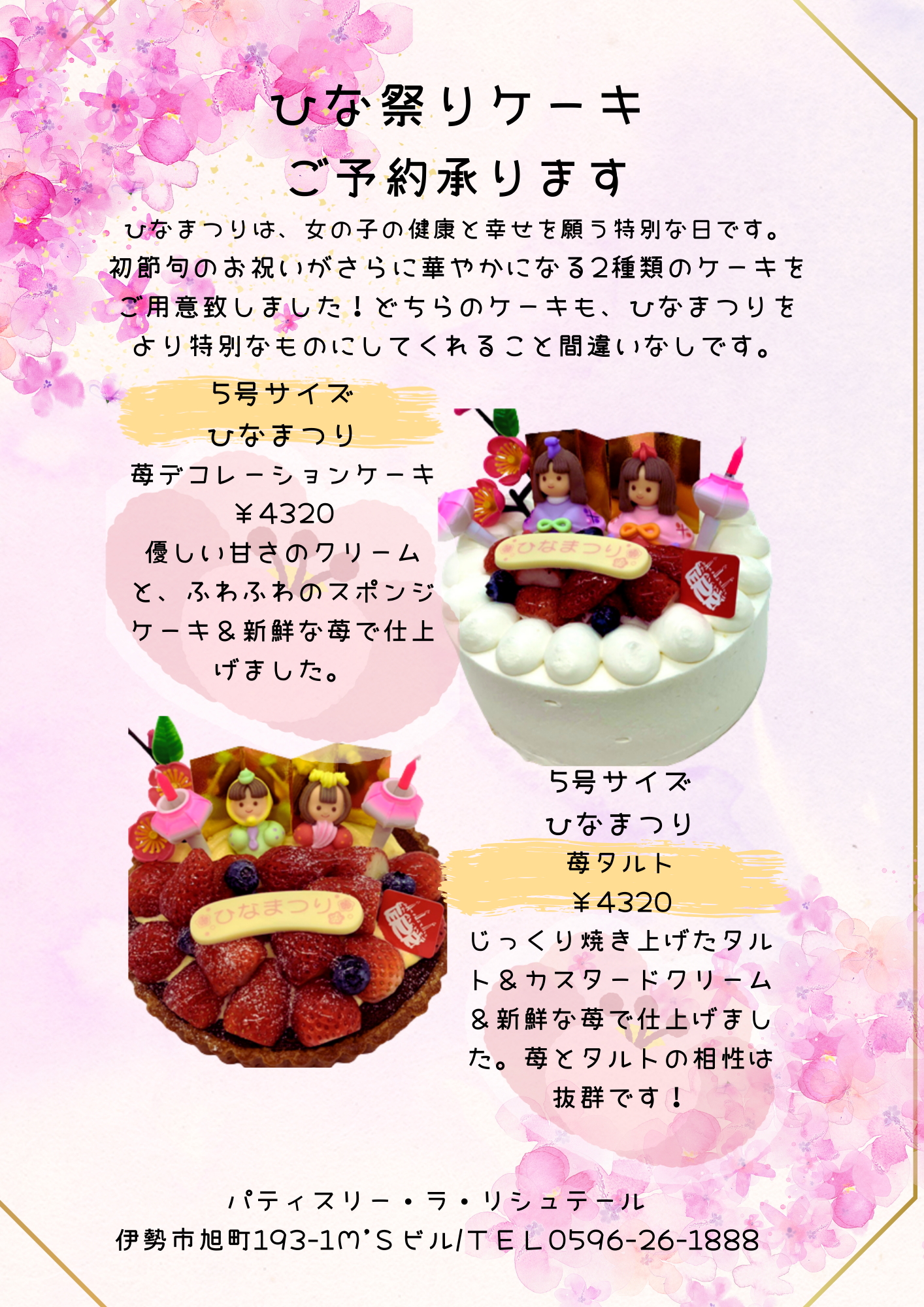 3月3日ひなまつり!ひな祭りケーキのご予約承ります!