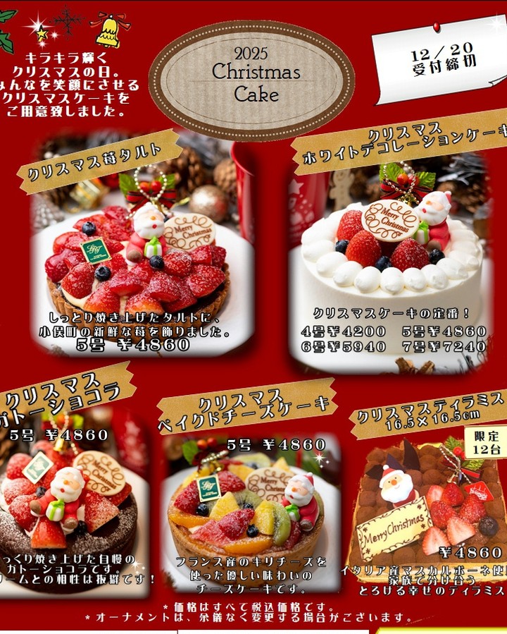 限定のケーキもございますので、お早めにご予約くださいませ(^^♪